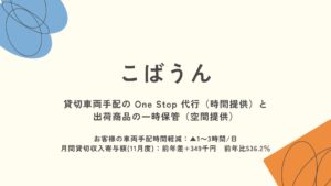 貸切車両手配の One Stop 代行(時間提供)と出荷商品の一時保管(空間提供)